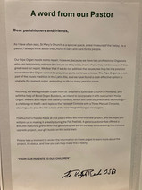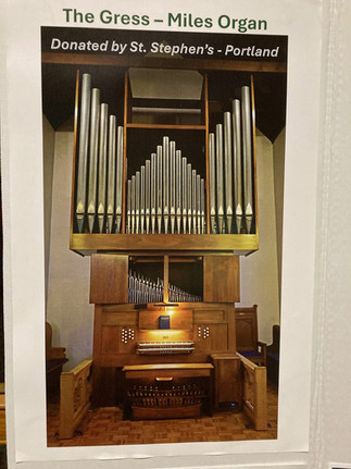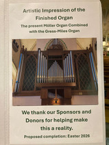 I recently visited St. Mary's Church in Mt. Angel and recorded these images of a display in their vestibule. The existing Möller is being combined with the Gress-Miles instrument formerly located in St. Stephen's Episcopal Church, Portland. The project is proceeding under the auspices of Bond Organ Shop, Portland, and will include a new 3 manual console in the transept in addition to the 2 manual console in the gallery. The project is expected to be completed by Easter of 2026.
